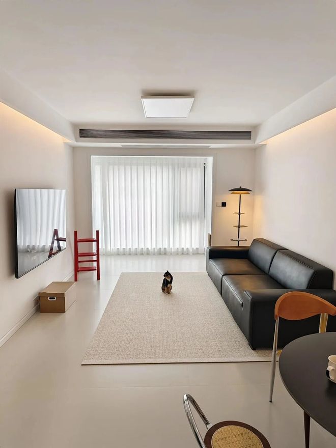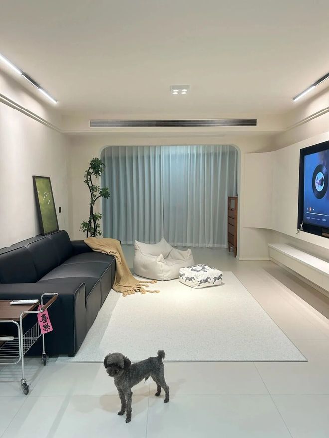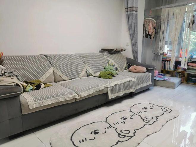建议:可以用防滑垫+沙发毯自制一个大地毯,脏了之后直接丢洗衣机里清洗,或者什么都不铺,简单又干净。
