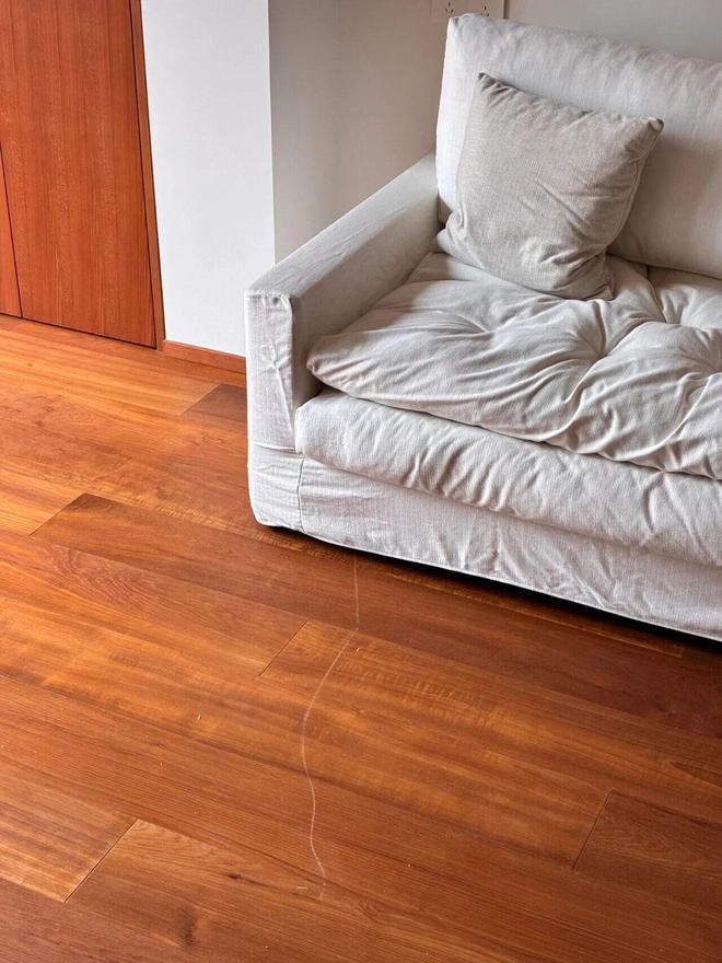 网友@小季的家:新家还没正式入住,实木地板就已经被家具给划了,感觉也太脆弱了,真不敢想象以后会被划成啥样。关键我还养了两只猫,现在头都大了。