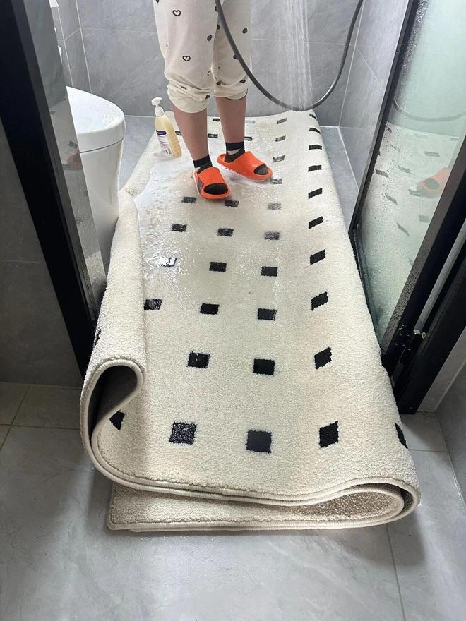 网友@沐辰汐家:有没有人告诉我地毯该怎么清洗,卫生间里根本就伸展不开啊,并且泡上水后还特别厚,一个人根本就抬不动,想扔都扔不了,早知道当初就不铺了。