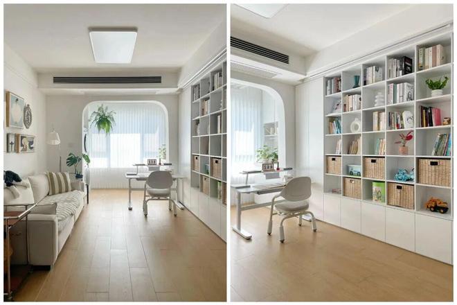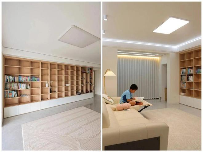 随着“去客厅化”设计的流行,满墙书柜设计就成了不少家庭的“白月光”,不仅能营造出深厚的文化氛围,看起来也颇具格调。