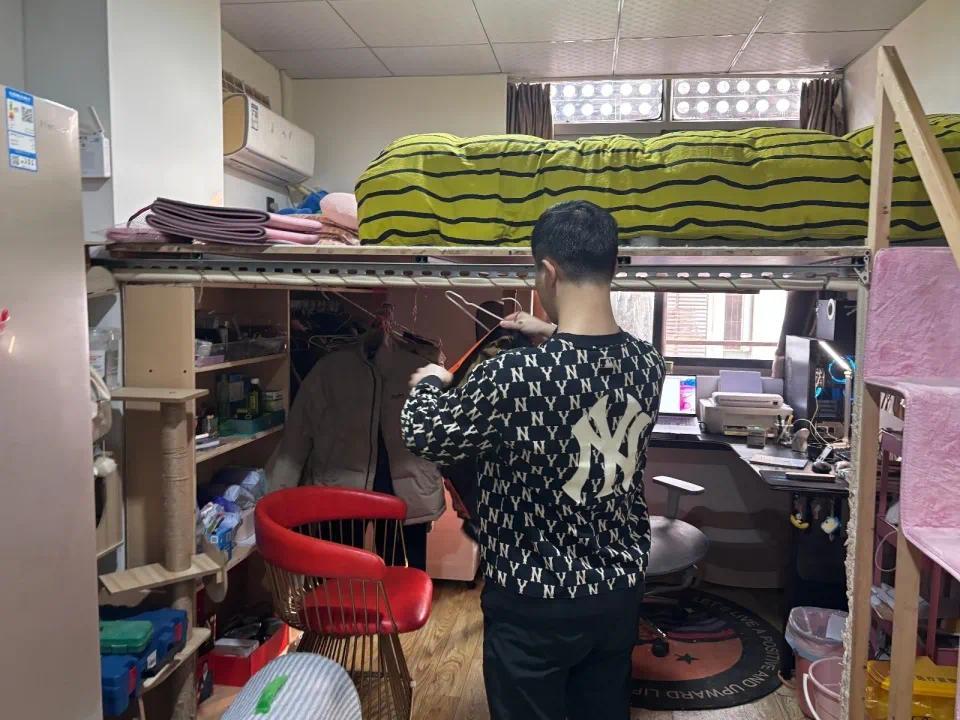 王勇还热情地介绍,住进小哥公寓这9个月,他把原本空旷的房间改造成了“上床下区”的布局:床在上方,下方空间可以放电脑桌、衣柜,既实用又整洁。“现在周边同等价位的房子,只能租到老破小的房间。”他感慨道,之前每月房租要3000多元,现在住在这里每月只需六七百元,负担轻多了。