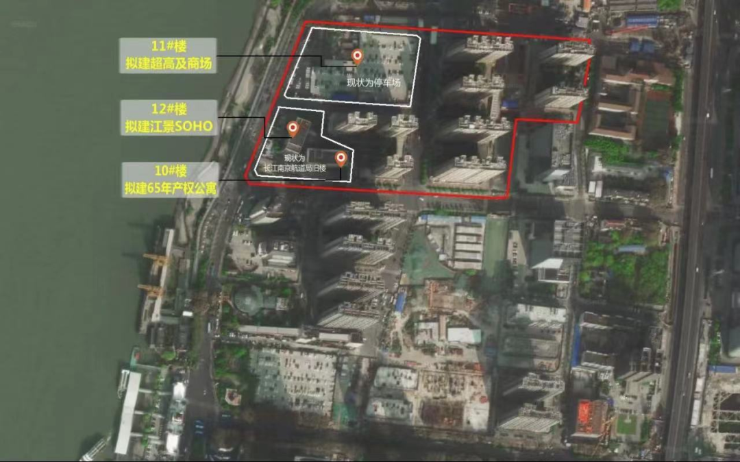 仔细对比可发现08-05地块为龙湖鼓楼滨江综合体地块内原规划的300米江景SOHO,目前仍未建。