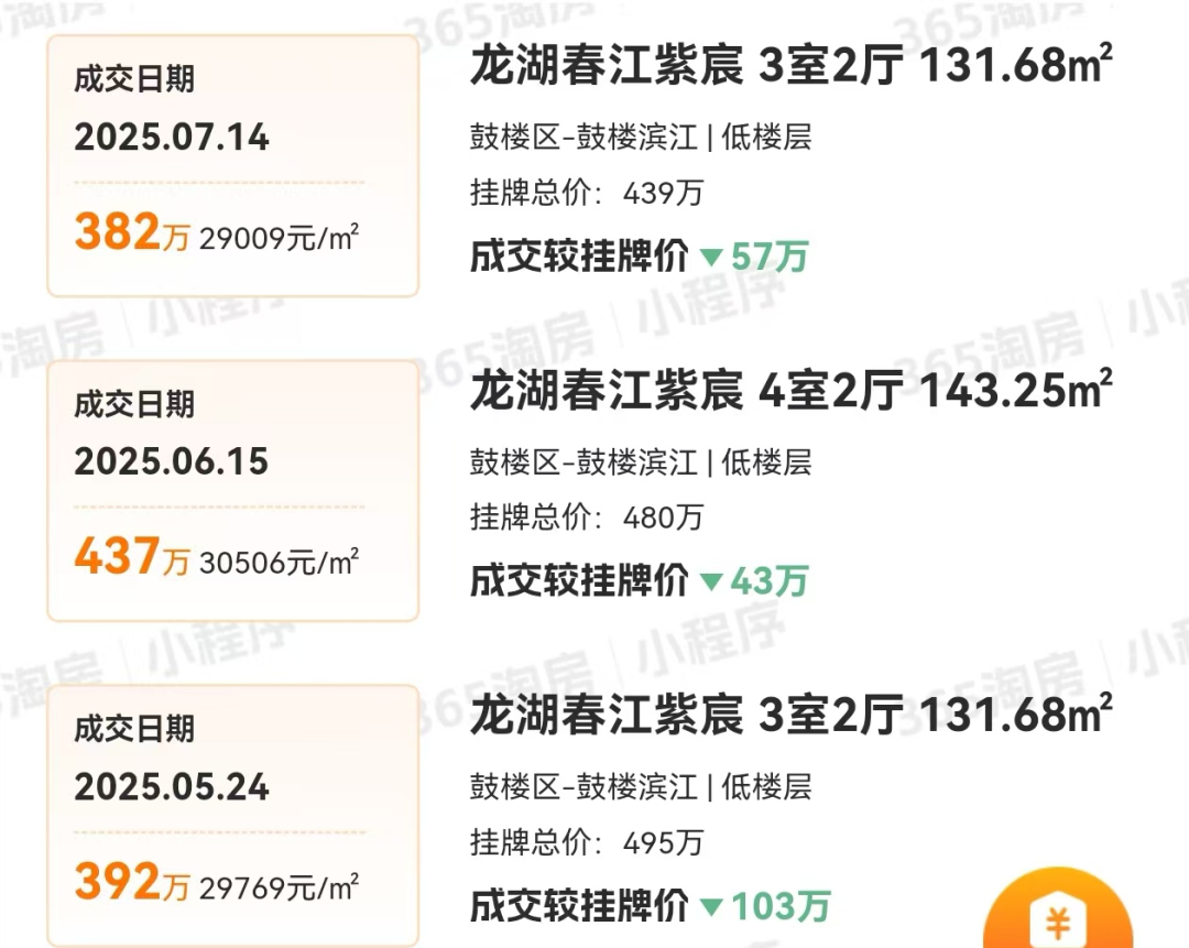 目前龙湖春江紫宸二手房成交价稳定在2.9-3.1万/平左右,据我们了解,龙湖春江紫宸10号楼最快10月份就将上市,价格很惊喜。